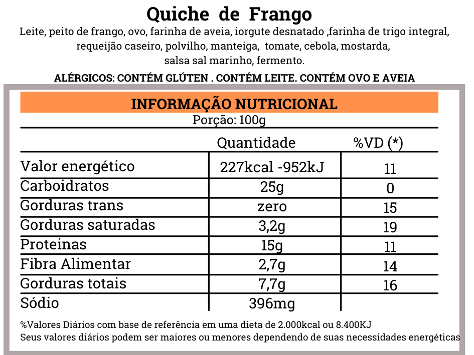 227kcal Elaborado com fina massa de mix de farinhas proteicas recheado com delicioso frango desfiado com milho natural e molho de tomate caseiro.